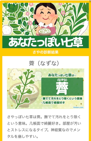 あなたっぽい七草診断をしたよーଘ(੭´。•~•。`)੭⁾⁾