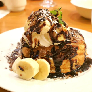 チョコソースやホイップ、アイスをバナナやデニッシュ生地に絡めて食べると、幸福感で満たされますよ♡(^^)d😃