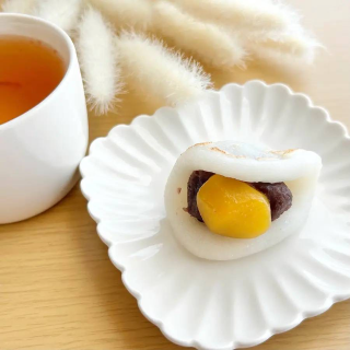 粒あんと栗を挟んだお餅で、粒あんも栗も優しい甘さで思わずうっとりですよ〜♡(#^.^#)😊