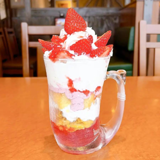 びっくりドンキーの「ジョッキパフェ(完熟いちご)」が、美味しいです(*^^*)😊