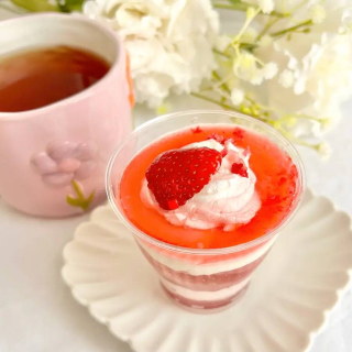 いちご感たっぷりのゼリーやクリームなどが入ったカップスイーツですよ〜♡(#^.^#)😊