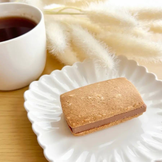 クッキーで、キャラメルソースが入った栗風味のチョコをサンドしたスイーツですよ〜♡(#^.^#)😊