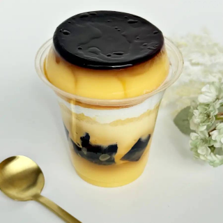 大きなプリンの下には、ホイップ、ムース、ゼリーがたっぷりと入っていてお腹いっぱいになりますよ〜♡(#^.^#)😊