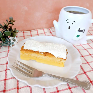 シフォンケーキのふわふわ感と、プリンのツルンとした食感を同時に楽しめるのが、新鮮な感覚でおいしいですよ(^-^)/😋
