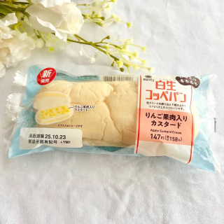 ファミマの「白生コッペパン (りんご果肉入りカスタード」が、美味しいです(*^^*)😊
