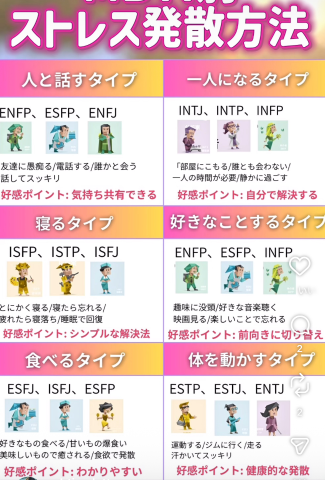 mbti 別の、ストレス発散方法だってଘ(੭´。•~•。`)੭⁾⁾
