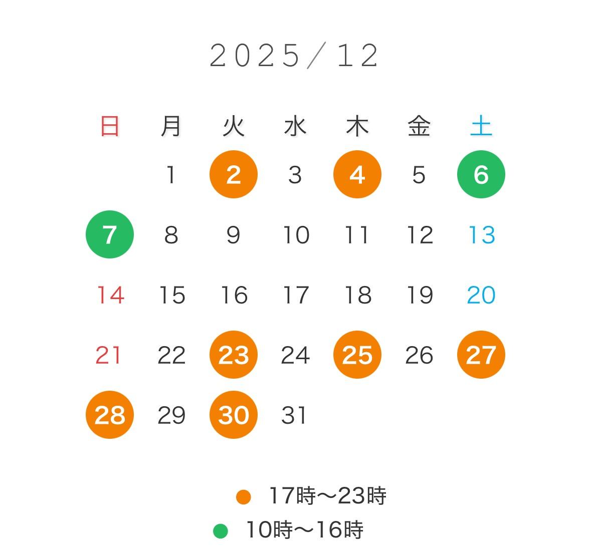日曜日が12時〜、14時〜が🈳です🙋🏻♀️