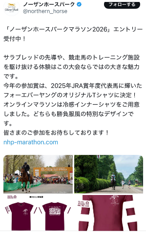 あと、今年のノーザンホースパークマラソンの景品は
